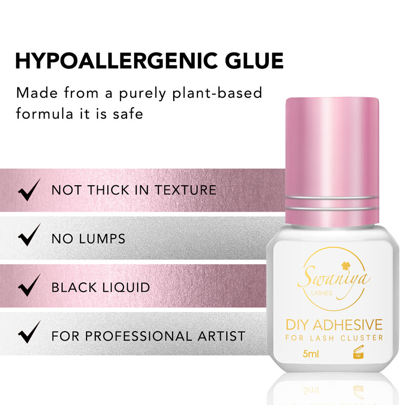 Swaniya DIY skropstu klastera līme ļauj pielāgot skropstas tieši tā, kā vēlaties. Neatkarīgi no tā, vai vēlaties dabisku izskatu vai dramatiskāku efektu, Swaniya līme ir ideāls pavadonis jums. Turklāt DIY skropstu kopas līme ir formulēta ar augstas kvalitātes sastāvdaļām, kas ir maigas uz jūsu ādu un acīm.